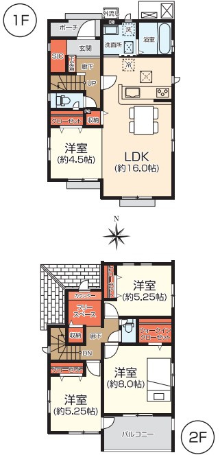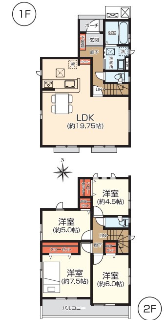 LDK 16.0帖/洋室 5.0帖/洋室 7.5帖/洋室 6.0帖/洋室 6.0帖 - 向き