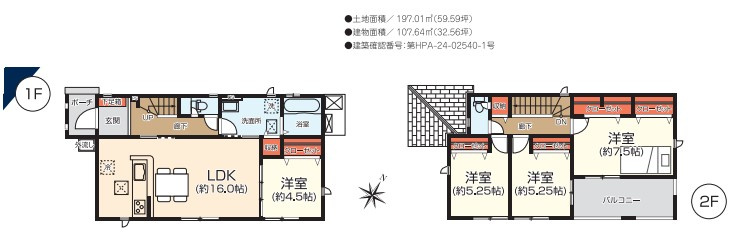 LDK 16.0帖 1室/洋室 4.5帖 1室/洋室 7.0帖 1室/洋室 6.5帖 1室/洋室 5.2帖 1室 - 向き